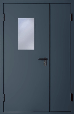 Полуторапольная противопожарная дверь со стеклом EI 60 (RAL 9016)