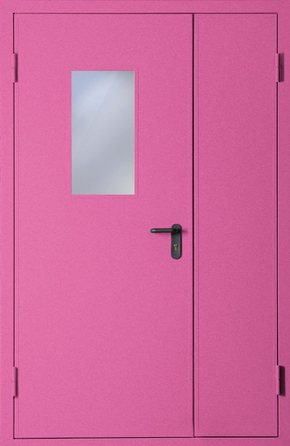 Полуторапольная противопожарная дверь со стеклом EI 60 с порошковым напылением (RAL 4003)