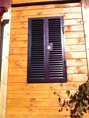 Двустворчатые ставни-жалюзи – востребованный вид защиты оконных проемов от грабителей. Кроме того, они хорошо пропускают свет, а регулируемые ламели позволяют регулировать его интенсивность.